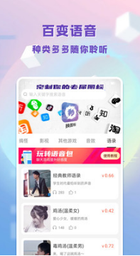 專(zhuān)注語(yǔ)音包資源軟件,海量語(yǔ)音包,男聲,女生,女主播,影視劇,明星等等應(yīng)有盡有,隨時(shí)在社交軟件和游戲中使用!