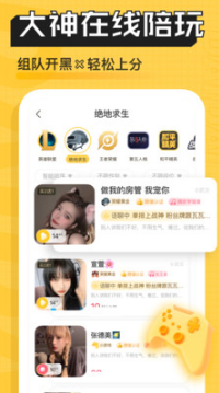 1、24小時(shí)在線,隨約隨玩,根據(jù)你的游戲類型和風(fēng)格,極速匹配到聲音好聽、技術(shù)超強(qiáng)、服務(wù)貼心的大神