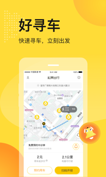 松果出行app是一款共享電單車軟件,通過松果出行app用戶們可快捷找車,享受便捷的掃碼騎行服務(wù)等。松果出行app給廣大用戶提供了另外一種綠色出行方式,無論走到哪都能租到車!