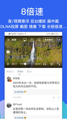 2、音/視頻懸浮,16倍速(支持0.5-16.0),分享鏈接,后臺播放,小窗播放,單曲循環(huán),DLNA投屏,視頻下載