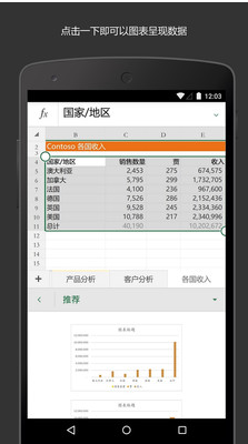 3、熟知的電腦端Excel功能可以在安卓端的微軟Excel應(yīng)用中使用,例如:公式,表格,圖表,迷你圖等