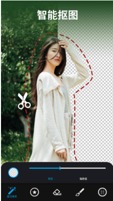 1、AI智能識別照片中的人物,刪除背景圖和切割多余圖像。手動處理圖片細節(jié)部分,讓你享受編輯圖片的樂趣,瞬間變身照片處理達人而無需photoshop