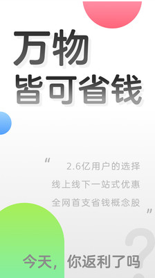 返利APP,中國國內(nèi)領(lǐng)先的網(wǎng)購返利品牌,專注品牌特賣、超高返利。網(wǎng)購買手必備,便捷網(wǎng)購,省錢返利,超高返,9塊9包郵、商城返,統(tǒng)統(tǒng)返、30秒到賬!