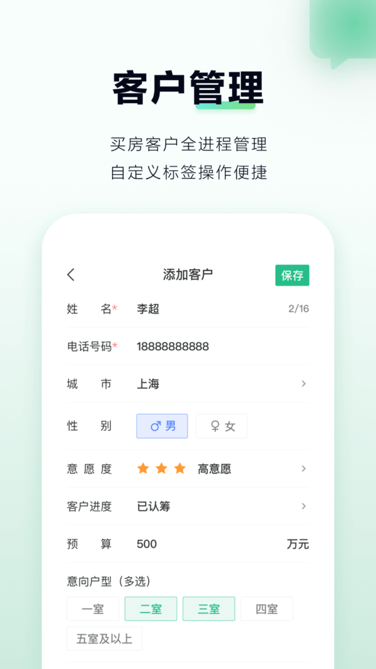 微聊客app是安居客的一款營(yíng)銷辦公手機(jī)應(yīng)用軟件,主要幫助廣大地產(chǎn)開發(fā)商及房產(chǎn)經(jīng)紀(jì)人提供豐富的客戶資源,并且為客戶推送最新的房產(chǎn)信息資訊,幫助更好的匹配客戶以及房源信息!