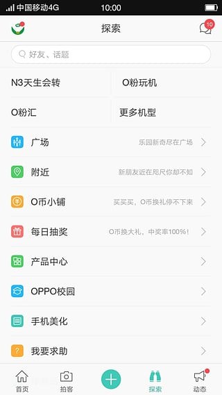 OPPO樂園是一個(gè)以移動(dòng)社交為基礎(chǔ)的品牌服務(wù)平臺,讓用戶更喜歡OPPO產(chǎn)品,享受更完善的服務(wù)。包含了頭條推薦、廣場版塊(包含娛樂、ColorOS 、手機(jī)版塊以及游戲應(yīng)用資源推薦)、拍客、好友動(dòng)態(tài)、個(gè)人主頁版塊,社交方式多元化!