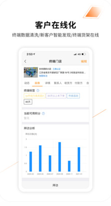 2、可關(guān)聯(lián)客戶與位置的手機拜訪,客戶情況及時總結(jié),拜訪記錄隨時可查。此外還可以統(tǒng)計出每個外勤人員每個時間段內(nèi)拜訪客戶的次數(shù),每個客戶每個時間段內(nèi)被拜訪的次數(shù)