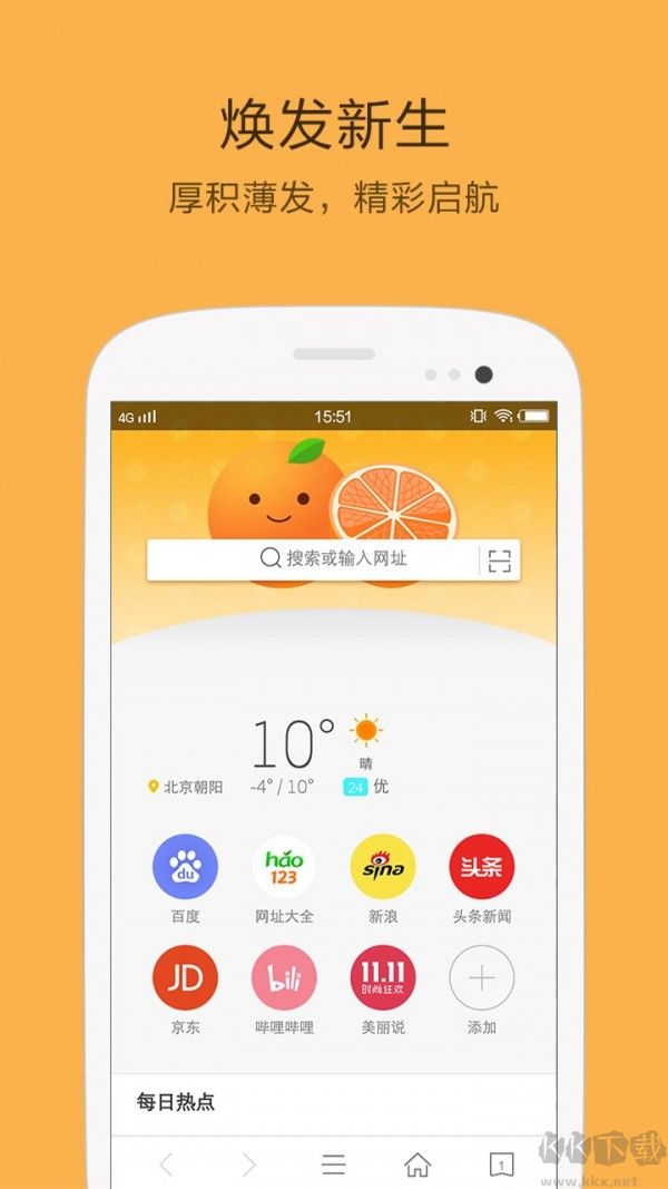 《橘子瀏覽器APP》是一款輕量級的手機(jī)瀏覽器,簡單好用超省流量,可快速訪問該網(wǎng)站。 讓用戶輕松訪問互聯(lián)網(wǎng)。一站式全網(wǎng)搜索,幫你找到想要的內(nèi)容!感興趣的朋友不要錯過,KK下載站推薦大家下載體驗(yàn)!