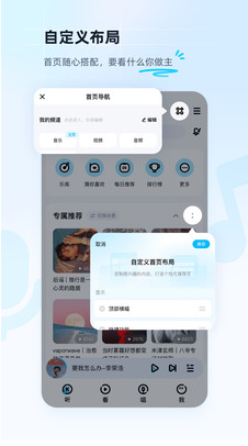 1、首頁入口自定義,要什么功能由你決定;推薦內(nèi)容根據(jù)您的喜好,推薦更符合你口味的歌曲