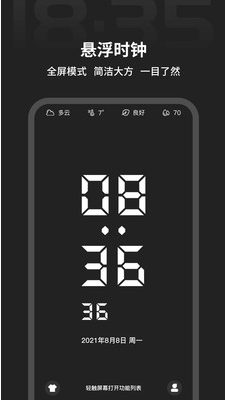 1、提供簡潔,干凈的全屏懸浮時鐘顯示,時間一目了然