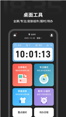 專注時鐘全屏數(shù)字顯示,有炫酷時鐘,自定義表盤圖片,多種精美皮膚,不同桌面小組件,給你個性化時鐘體驗!