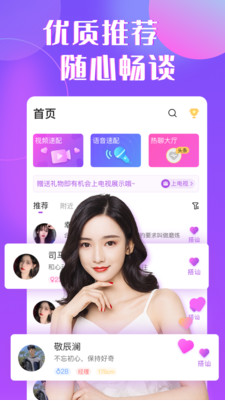 4、緣分隨機匹配,語音聊天配對找到真愛,用溫柔幽默的聲音,單身約會交友平臺,和你心動的TA同城約電影,找到一個有趣的靈魂伴侶