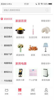 3、商品覆蓋家居、母嬰、電器、生活用品等10個(gè)品類,上千款商品。
