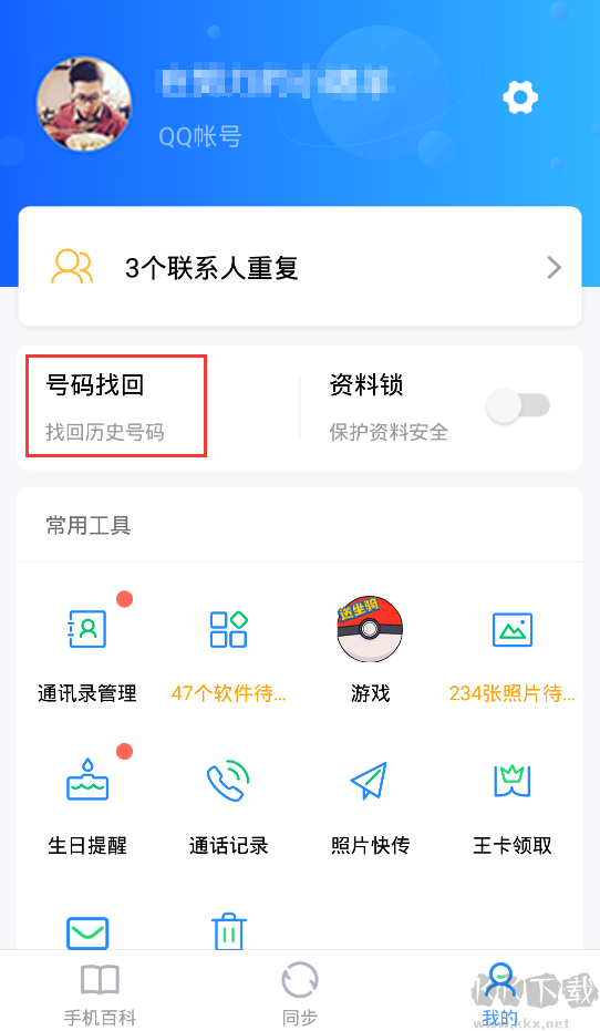 如果您的手機(jī)通訊錄錯亂或名片被誤刪,可通過點(diǎn)擊右下角【我的】→【號碼找回】→【回收站】中,找到最近被刪除的聯(lián)系人,添加回手機(jī)通訊錄中;還可以在【號碼找回】→【時光機(jī)】中,對手機(jī)通訊錄進(jìn)行恢復(fù)。