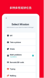 2、鬧鐘響起后,必須完成任務(wù)才能關(guān)閉。支持數(shù)學題,運動,拍照等等各類任務(wù)