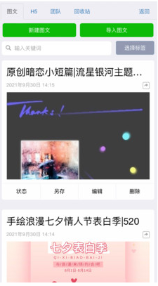 1、可以管理自己秀米賬號下面保存的圖文/秀