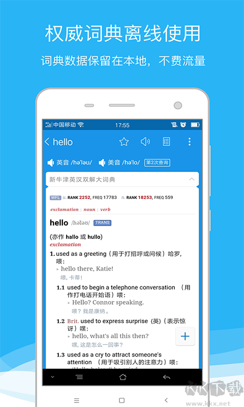 歐路詞典是一款非常專業(yè)的詞典軟件,分為電腦版和手機(jī)版,手機(jī)版可以隨時(shí)隨地進(jìn)行查詢,同量還提供了拍照翻譯功能!特別好用!KK下載站提供的是清爽版本,無(wú)沒(méi)有廣告哦。歐路詞典具備單詞、句子的翻譯功能,翻譯效果好,查詞準(zhǔn)確。