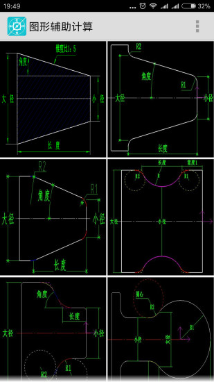 13、圖形輔助-錐度計算圖形-編輯框內可實現(xiàn)加減乘除(+-*/)計算,[如在長度編輯框內輸入36/2再次點該擊編輯框會得出結果