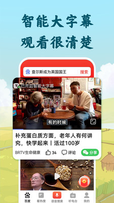 百度大字版,中老年朋友必備軟件,視頻資訊任意看,電臺小說隨心聽,日常工具全都有,陪伴你度過溫暖時光!