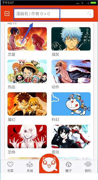 2、在這里你可以根據(jù)漫畫類別搜索,也可以直播輸入漫畫名或作者進(jìn)行搜索,如下面kkx分享的圖片: