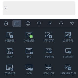 如圖,我們可以看到,手心輸入法支持拼音九鍵,拼音全鍵,雙拼全鍵以及筆畫,沒有手寫鍵盤哦,習慣手寫的朋友可能沒法使用,不過可以試試練習其它的輸入法鍵盤哦。