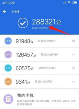 4、等待安兔兔跑分測(cè)試完之后,我們就可以看得到我們手機(jī)的跑分情況了。
