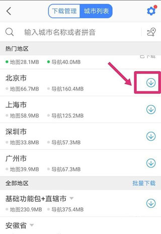 4、選擇想要下載的地圖,點(diǎn)擊下載