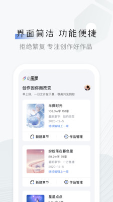 1、界面布局簡潔,功能操作便捷,專注作家創(chuàng)作好內(nèi)容