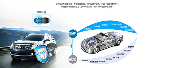 1、360°全車體檢隱患早知到,全方位汽車健康檢查,專業(yè)故障檢測(cè),同時(shí)行駛中車速、水溫、電壓等異常時(shí),系統(tǒng)及時(shí)傳送提醒信息,摒除安全隱患,確保車輛駕駛安全出行!