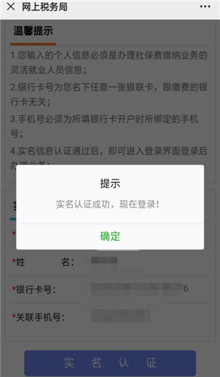 3、輸入證件號(hào)碼和姓名、點(diǎn)擊“登錄”;接著閱讀提示并點(diǎn)擊“確定”;