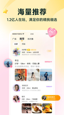 1、上億人在線交友,海量推薦,滿足你的要求