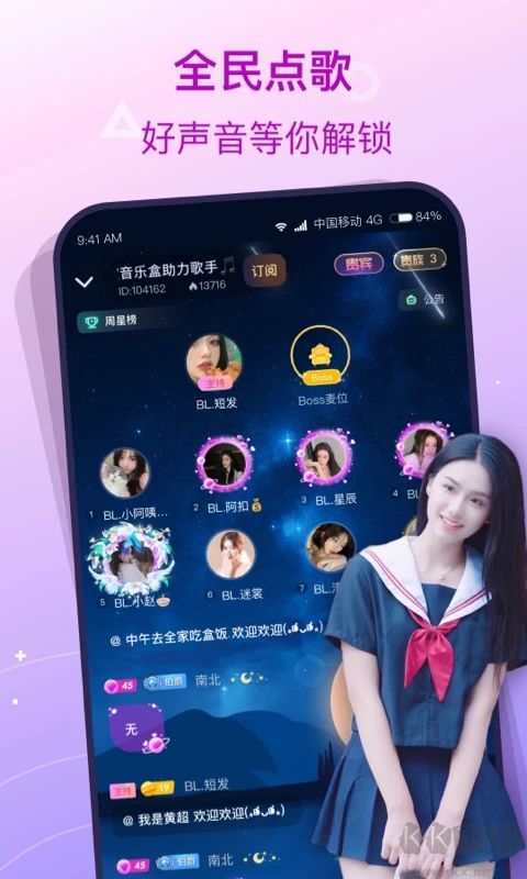 2、聊天室全天開放,完美體驗,專屬待遇,更有情感電臺,聊天交友,歌手點唱實時在線互動。