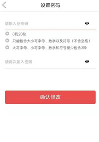 5、彈出在修改密碼界面,要根據(jù)他的提示修改密碼,數(shù)字,字母,大小寫(xiě),長(zhǎng)度,設(shè)置完成之后,點(diǎn)擊“確認(rèn)修改”,修改成功會(huì)提示“修改成功”;