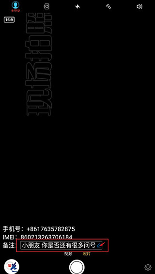 3、現(xiàn)在返回拍攝頁(yè)面,就可以看到自己的備注內(nèi)容了,若是想要修改,可以點(diǎn)擊藍(lán)色標(biāo)記按鈕