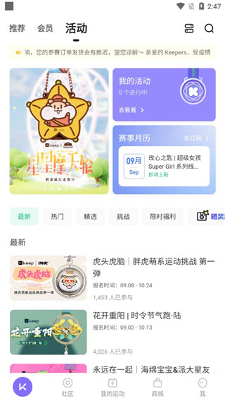 3、在這里還擁有超多活動等你參加,你可以報(bào)名參加線下活動,去體驗(yàn)各具特色的健身房和高品質(zhì)的賽事;
