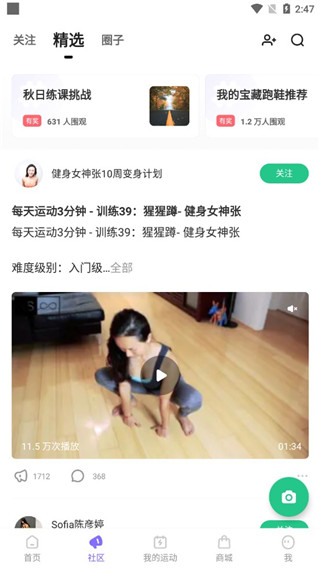 4、在社區(qū)中你可以看到很多健身達(dá)人、教練,并關(guān)注他們的健身動態(tài),能夠讓你了解更多練習(xí)技巧;