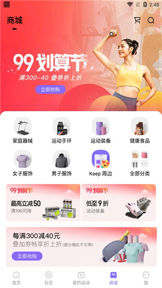 6、而軟件中的商城功能也是一大亮點(diǎn),你可以在這里購買各種運(yùn)動健身裝備,幫助你更好的練就完美身材;