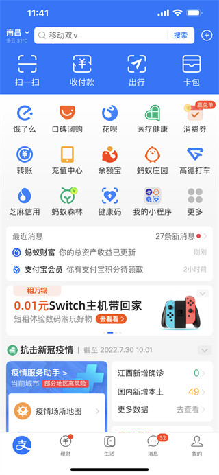 9. 一站式管理:支付寶APP可以管理用戶的銀行卡、信用卡、公交卡、積分等各種卡片,方便用戶進(jìn)行資產(chǎn)管理。