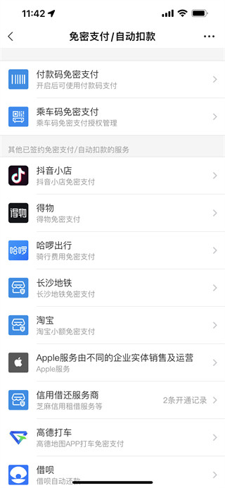 4、在支付設(shè)置里,找到“免密支付/自動(dòng)扣款”點(diǎn)擊進(jìn)入。