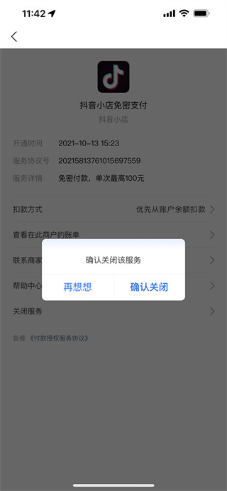 6、最后出現(xiàn)“關(guān)閉服務(wù)”繼續(xù)解約后就解除了,就不在自動(dòng)續(xù)費(fèi)了。