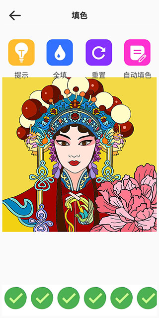 3、直到你找到喜歡的畫作,點擊便可以進(jìn)行繪制了,上方顯示的是繪制可以用到的四個功能鍵。