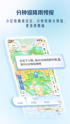 1、未來降水預(yù)報,精準到分鐘級別。用戶所在街道,每時每刻雨雪變化,盡在掌握;