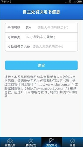 3、在決定書號界面,您可以查詢您的機(jī)動車違法情況;
