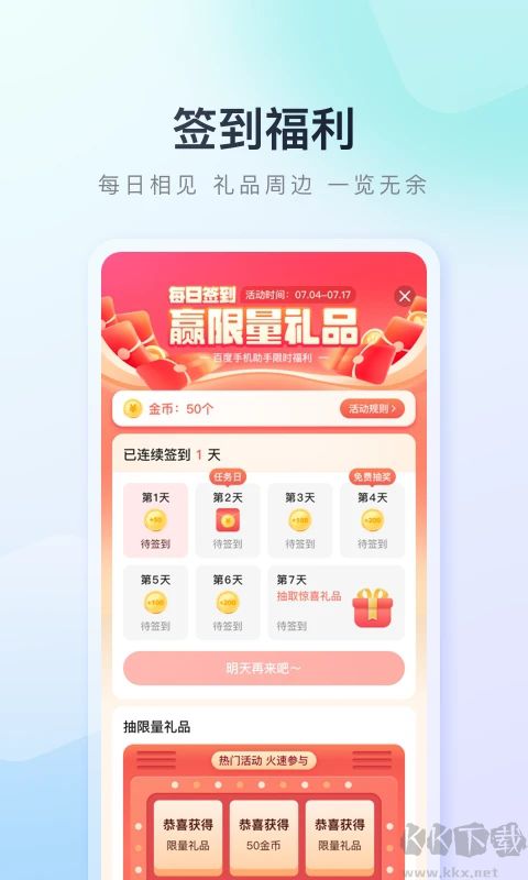 百度手機助手APP也叫《百度應(yīng)用商店》是由百度出品的高顏值實用手機應(yīng)用商店。為用戶提供海量權(quán)威安卓應(yīng)用資源,覆蓋必備應(yīng)用,熱門游戲,實用工具等等,滿足用戶全部需求。還支持圖片壓縮,手機清理等專業(yè)功能,使用更方便;每日簽到還有驚喜福利等你拿哦!感興趣的朋友不要錯過,KK下載站推薦大家下載體驗!