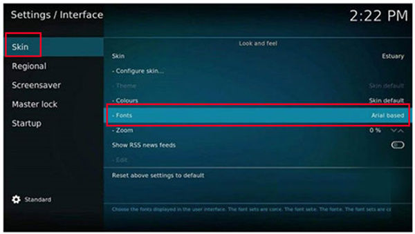 3、在Skin選項(xiàng)中選擇Fonts—Arial baesd。