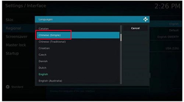 5、找到Chinese(simple),按下確認(rèn)后,界面即可變成中文了。