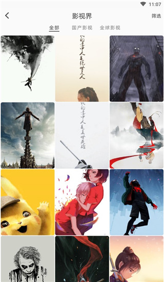 點(diǎn)擊軟件右上角的導(dǎo)航,我們也可以看到當(dāng)前軟件擁有14個(gè)圖片分類,小編隨便打開了影視界,我們可以選擇國(guó)產(chǎn)影視和全球影視,國(guó)產(chǎn)影視最火的壁紙莫過于大話西游了,所以我就直接搜了大話西游。