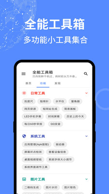 1、該APP提供了與文字、圖片、設(shè)備、清理、文件、計(jì)算、查詢、相關(guān)的多種工具,基本滿足您在日常使用手機(jī)時(shí)的所有工具需求。