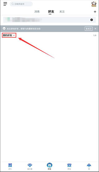 1、首先,我們打開并登錄軟件,在下方的導(dǎo)航欄處找到好友功能,然后點進去。