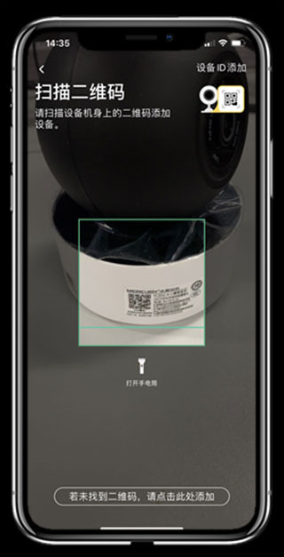 登錄APP后,攝像機在出廠狀態(tài)下上電后紅綠燈交替閃爍,在APP上點擊 設(shè)備 主界面右上角的“+”,掃描無線網(wǎng)絡(luò)攝像機機身上的二維碼,如下圖: