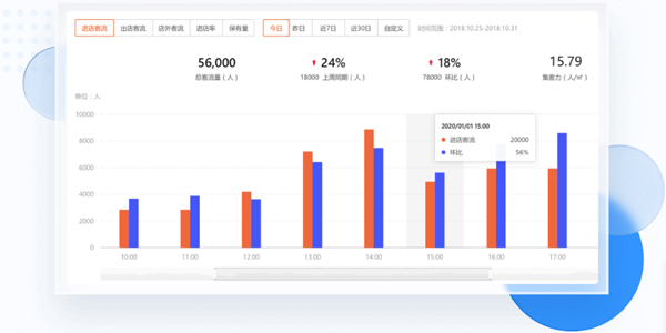 通過客流計數(shù),準確統(tǒng)計各時段門店進出客流量,掌控實時客流